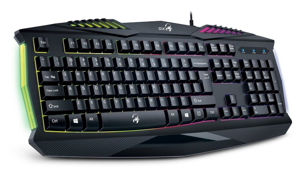 Klávesnice Genius GX Gaming Scorpion K220 je rovněž odolná proti polití a disponuje barevným podsvícením, čímž se eliminují nepříjemné okamžiky při dlouhotrvajících turnajích, závodech nebo brouzdání po fantasy světě v nočních hodinách.
