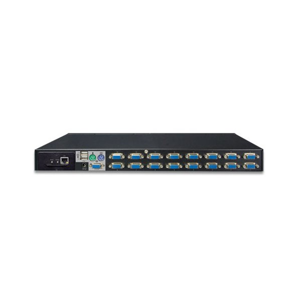 Vzdálené ovládání 16 počítačů po IP, vzdálené ovládání utilitou pro OS Windows, přenos obrazu s kompresí H.264. Lokální rozhraní VGA, USB, PS/2. LAN 1x 1000Base-T. Management PC může být pouze na platformě Windows. Ovládané počítače už jsou na OS nezávislé (Win, Linux, Mac…). Kaskádováním s klasickými KVM je možné ovládat až 64 stanic.