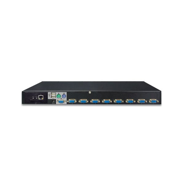 Vzdálené ovládání 8 počítačů po IP, vzdálené ovládání utilitou pro OS Windows, přenos obrazu s kompresí H.264. Lokální rozhraní VGA, USB, PS/2. LAN 1x 1000Base-T. Management PC může být pouze na platformě Windows. Ovládané počítače už jsou na OS nezávislé (Win, Linux, Mac…). Kaskádováním s klasickými KVM je možné ovládat až 64 stanic.