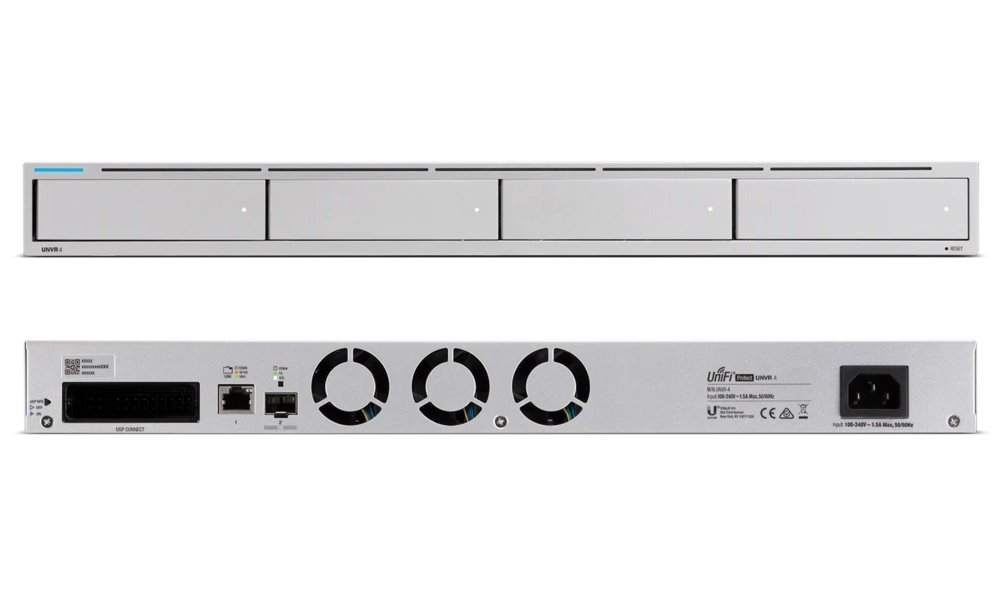 Záznamové zařízení se čtyřmi 2,5/3,5" pozicemi pro disky, které můžou nahrávat až 30 dní 4K videozáznamu pro 18 kamer nebo Full HD pro 60 kamer. Disky jsou přístupné z předního panelu, takže jejich montáž a výměna jsou opravdu jednoduché úkony. Zařízení je možné do sítě připojit prostřednictvím SFP+ slotu nebo GbE RJ-45 portu a namontovat lze do běžného 19'' racku, kde zabere výšku 1U. K NVR lze přistupovat ze stolního počítače, notebooku, ale také tabletu nebo mobilního telefonu díky mobilní aplikaci pro iOS i Android.