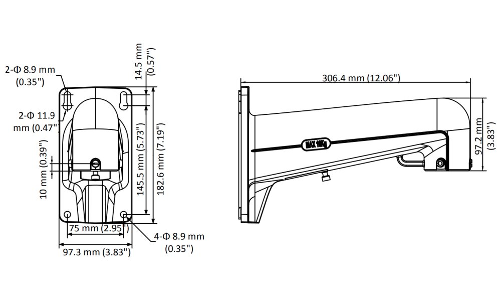 Nástěnný držák pro speed dome kamery Hikvision. Zeď musí unést více než 3krát větší hmotnost, než je celková hmotnost kamery a držáku.
