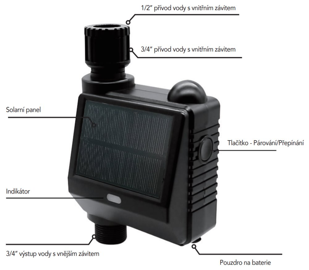 Ventil se solárním panelem pro vytvoření chytrého zavlažovacího systému. Prostřednictvím aplikace pro chytré telefony lze nastavovat zavlažovací cykly, rozsah průtoku a sledovat stav otevření ventilu. Napájení je řešeno dvěma AA bateriemi (nejsou součástí balení), které jsou dobíjeny pomocí vestavěného solárního panelu. Zařízení komunikuje na protokolu ZigBee 3.0. Bezplatná aplikace IMMAX NEO PRO je kompatibilní se systémy TUYA, Lidl a podporuje hlasové ovládání pomocí Google Assistant, Amazon Alexa a Apple Siri.