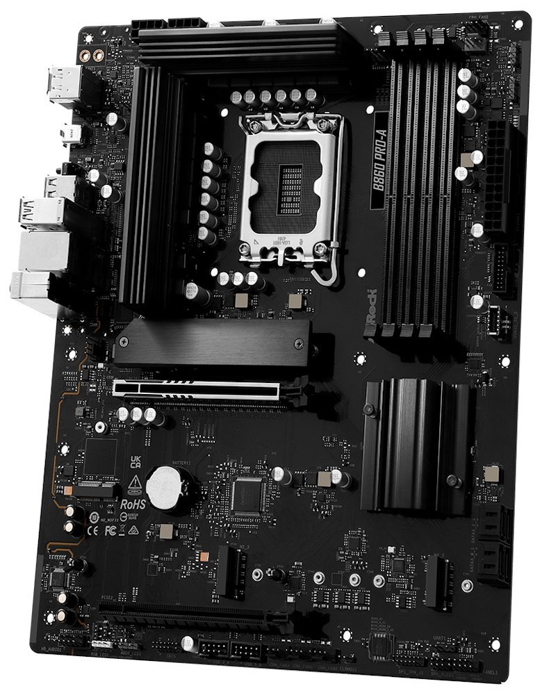 Základní deska ASRock B860 Pro-A z modelové řady Pro-A si zakládá na zvýšené provozní stabilitě, odolnosti a efektivním využití procesoru Intel Core Ultra série 2. Je ideální pro stavbu počítače, který zvládne každodenní úlohy. Základní deska ASRock B860 Pro-A disponuje robustním systémem napájení pro plynulý přísun energie k procesoru. Díky tomu dosahuje CPU potřebného výkonu pro práci i multimediální zábavu. Model podporuje operační paměť typu DDR5.