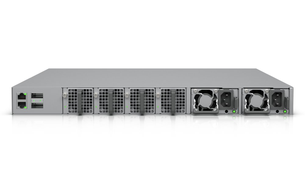 Porty: 16× 10G RJ-45 PoE+++, 32× 2,5G RJ-45 PoE+++, 2× 100G QSFP28, 4× 25G SFP28, 1× 1 GbE management, 1× konzolový port RJ-45