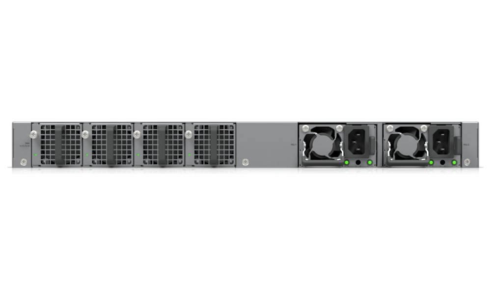Porty: 4× 25G SFP28, 16× 2,5G RJ-45 (PoE+++), 32× 10G RJ-45 (PoE+++)