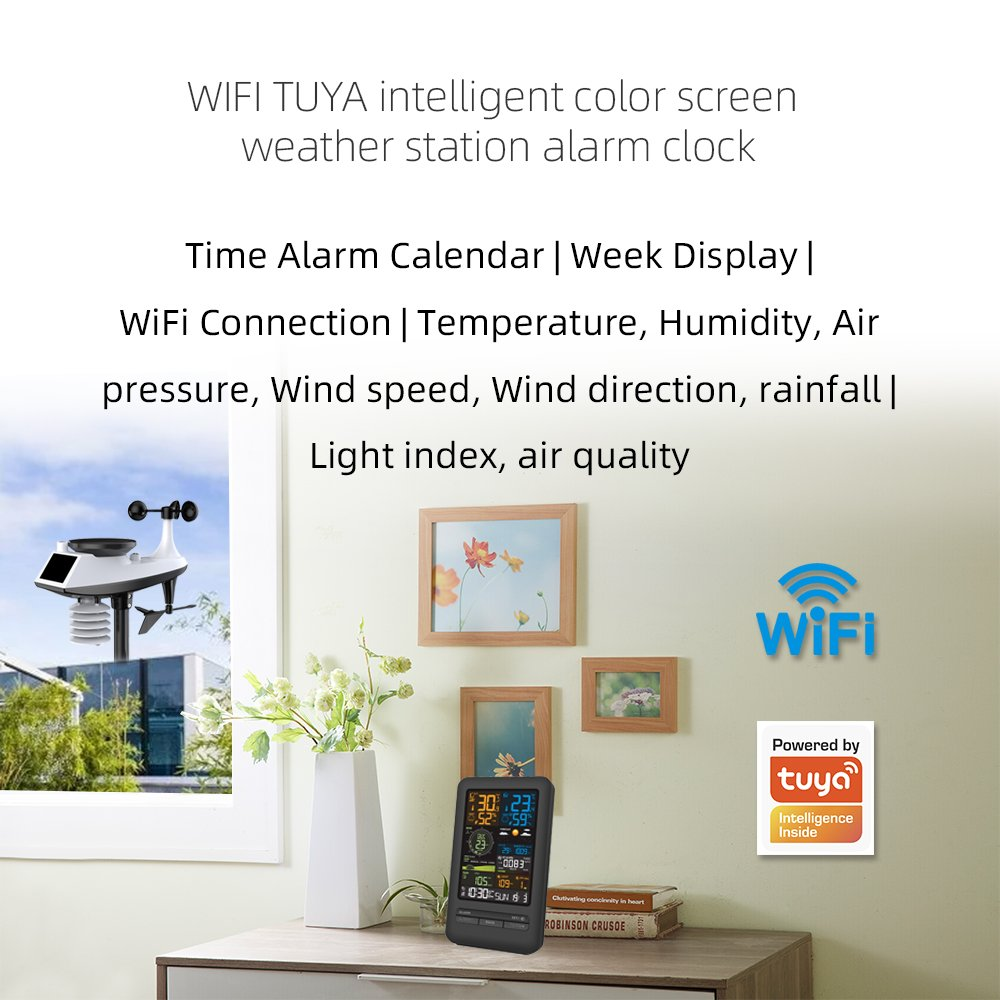 Vypočítává rosný bod, pocitovou teplotu, ochlazení větrem a index horka. Díky plné integraci do systému Tuya Smart můžete automatizovat domácí zařízení podle aktuálního počasí – od ovládání žaluzií při silném slunci nebo větru, přes větrání podle rosného bodu, až po inteligentní zálivku zahrady na základě denních srážkových úhrnů a slunečního svitu.