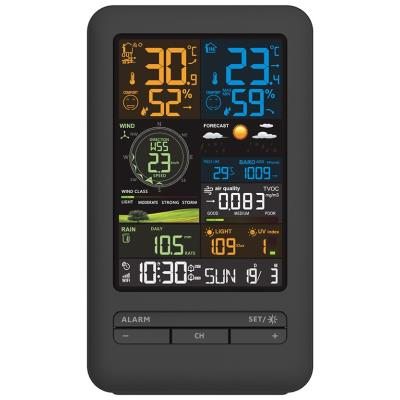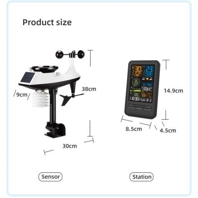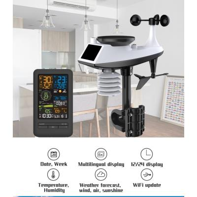 Meteostanice, měření až 9 parametrů (teplota, vlhkost, tlak, srážky, rychlost a směr větru, záření, UV index, TVOC), Tuya Smart, Wi-Fi, 433MHz, LCD displej, černo-bílá