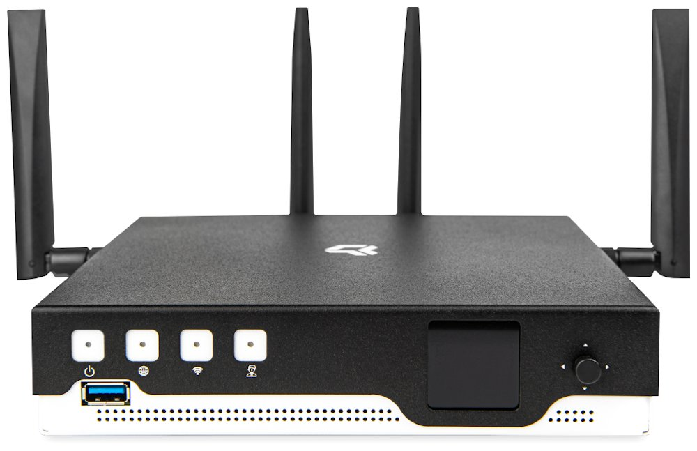 Router podporuje současné nasazení 5G a Wi-Fi 7 připojení s až 8 anténami pro optimální pokrytí. Dva spare M.2 sloty a USB 3.0 porty umožňují připojení úložišť, 5G modulů nebo specializovaných karet podle potřeb uživatele.
