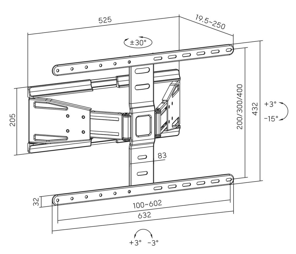 Držák umožňuje jemné vyrovnání televizoru v rozsahu ±3° po zavěšení, což zajišťuje dokonale rovné umístění. Přiložená vodováha s háčkem usnadňuje přesnou horizontální instalaci.