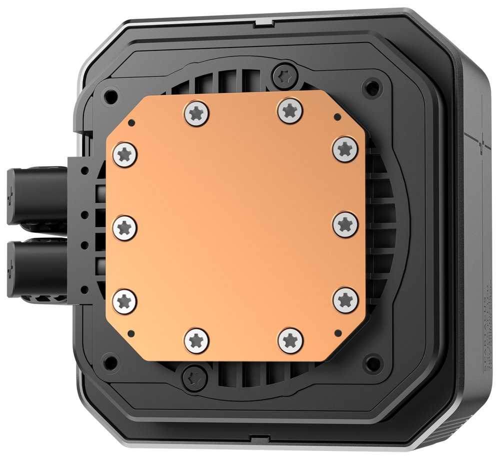 Srdcem systému je Gen 6 pumpa s 3fázovým 6slotovým motorem a FOC řízením, která pracuje v rozsahu 2500–3400 RPM a zvládne odvést až 320 W tepelného výkonu. Tři 120mm ventilátory s hydraulickými ložisky poskytují vzduchový tok 79,89 CFM při statickém tlaku 3,30 mmAq a hlučnosti ≤32,23 dB(A). Ventilátory podporují PWM regulaci v rozsahu 500–2500 RPM a při PWM < 5 % se zastaví úplně.