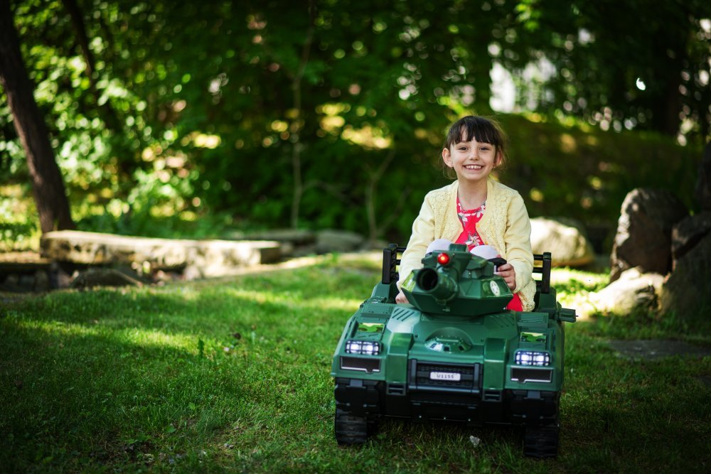 With a 12V battery, it provides up to 45 minutes of continuous operation, which is plenty of time to explore the garden or park. The maximum speed of 4 km/h and the option to choose between two speed levels ensures safe driving. For complete control, the tank is equipped with a remote control with a range of up to 10 meters, allowing parents to intervene if necessary.