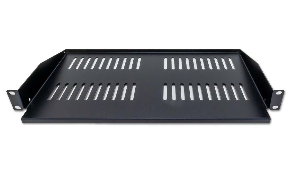 Univerzální police 280 mm určená pro montáž do libovolných 19" rozvaděčů.