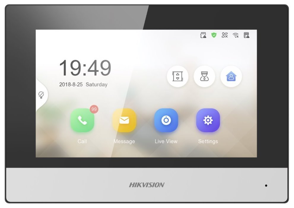 Bytový monitor (interkom) s dotykovou 7" LCD obrazovkou a rozlišením 1024 × 600 px. Nabízí mikrofon + reproduktor, kompresi G.711U, protokoly TCP/IP, SIP, RTSP, Wi-Fi (802.11b/g/n), 8× Alarm vstup pro senzory (např. PIR, detektor kouře atd.) a 2× alarm výstup.