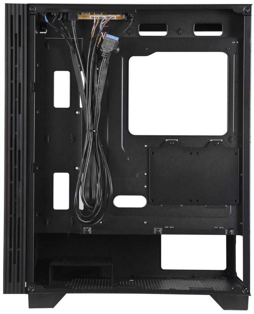 Kvalitní počítačová skříň formátu Middle Tower nabízí čtyři 2,5" a dvě 3,5" pozice pro SSD a pevné disky. Skříň je vybavena průhlednou bočnicí a poloprůhledným čelem s perforací pro optimální proudění vzduchu. Předinstalovány jsou čtyři 120mm ventilátory s FRGB podsvícením. Na horním panelu se nachází dva porty USB 3.0, jeden port USB 2.0, sluchátkový výstup a audio vstup pro mikrofon. Ve skříni je dostatek prostoru pro chladič CPU do výšky až 170 mm a grafickou kartu o délce až 355 mm. Důmyslné řešení umožňuje pohodlné umístění až 360 mm dlouhého výměníku vodního chlazení na přední straně. Potěší také přítomnost prachových filtrů. Skříň je dodávána bez zdroje.