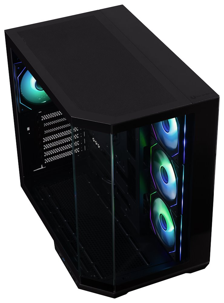 Herní počítačová skříň nabízí stylovou prosklenou bočnici, průhledný přední panel a prvotřídní kovovou konstrukci. Skříň je osazena čtyřmi ventilátory o velikosti 120 mm s ARGB podsvícením. Potěší také možnost rozšíření o dalších šest ventilátorů. Samozřejmostí jsou také prachové filtry. Důmyslné řešení umožňuje pohodlné umístění až 360 mm dlouhého výměníku vodního chlazení na přední a vrchní straně. Ve skříni je dostatek prostoru pro chladič CPU do výšky až 155 mm a grafickou kartu o délce až 420 mm. Na bočním panelu se nachází dva USB porty, jeden port USB-C a jeden kombinovaný audio konektor. Skříň je dodávána bez zdroje.