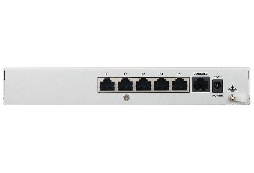 Porty: 5× GbE RJ-45, 1× USB 3.0, 1× konzolový port RJ-45