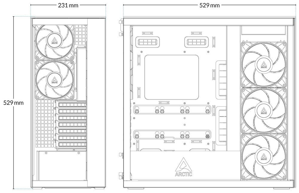 PC skříň ARCTIC Xtender VG Mirror pro stavbu výkonného systému, který se nebude krčit v nevzhledné krabici. Prémiová konstrukce poutavá na pohled nebo podpora špičkového chlazení jsou jen některé aspekty, kterými si tato počítačová skříň získá pozornost. Skříň formátu Middle Tower nabízí dostatek prostoru pro výkonné komponenty a jejich pohodlnou instalaci. Podporuje základní desky o velikosti až E-ATX o šířce až 285 mm, GPU a efektivní chlazení. Zrcadlové temperované sklo je elegantní a umožňuje pohled od útrob sestavy. Decentní odlesky dodají také patřičný šmrnc.