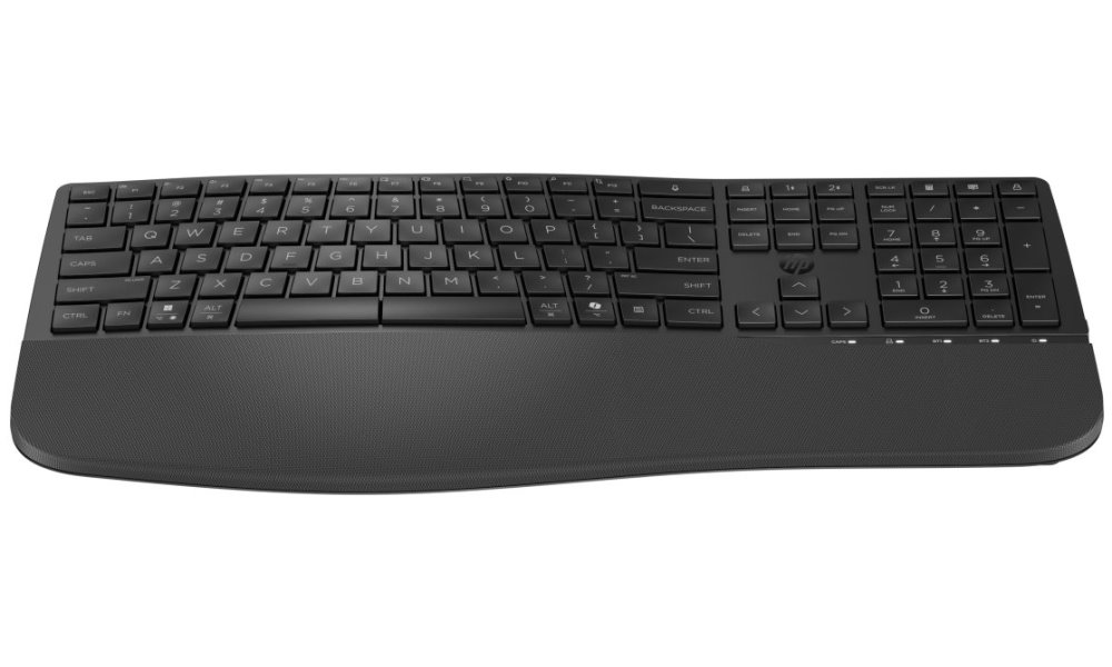Bezdrátová klávesnice HP 685 Comfort Dual-Mode je navržena pro podnikání a náročný firemní provoz. Díky pokročilému ergonomickému vlnitému designu podporuje příjemné psaní a činnost na PC. Přirozenější poloha rukou snižuje námahu při dlouhotrvajícím psaní. Klávesy umožňují tichý chod a využívání moderních funkcí – například chytrého asistenta Microsoft Copilot.