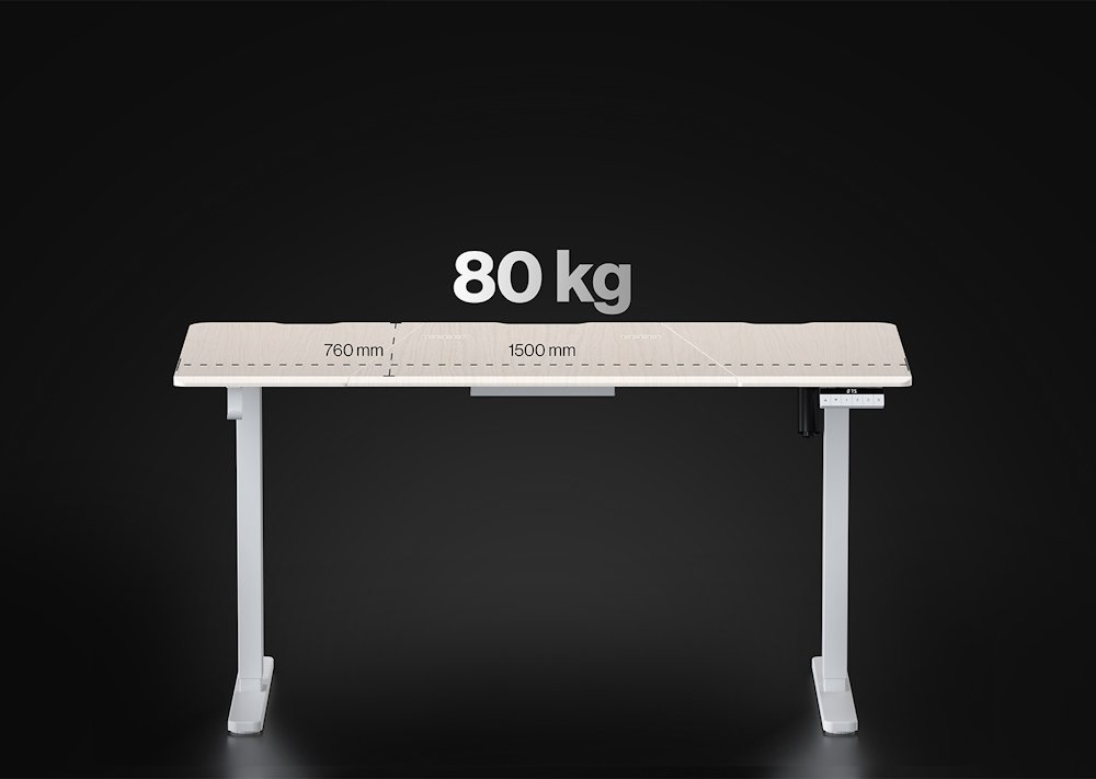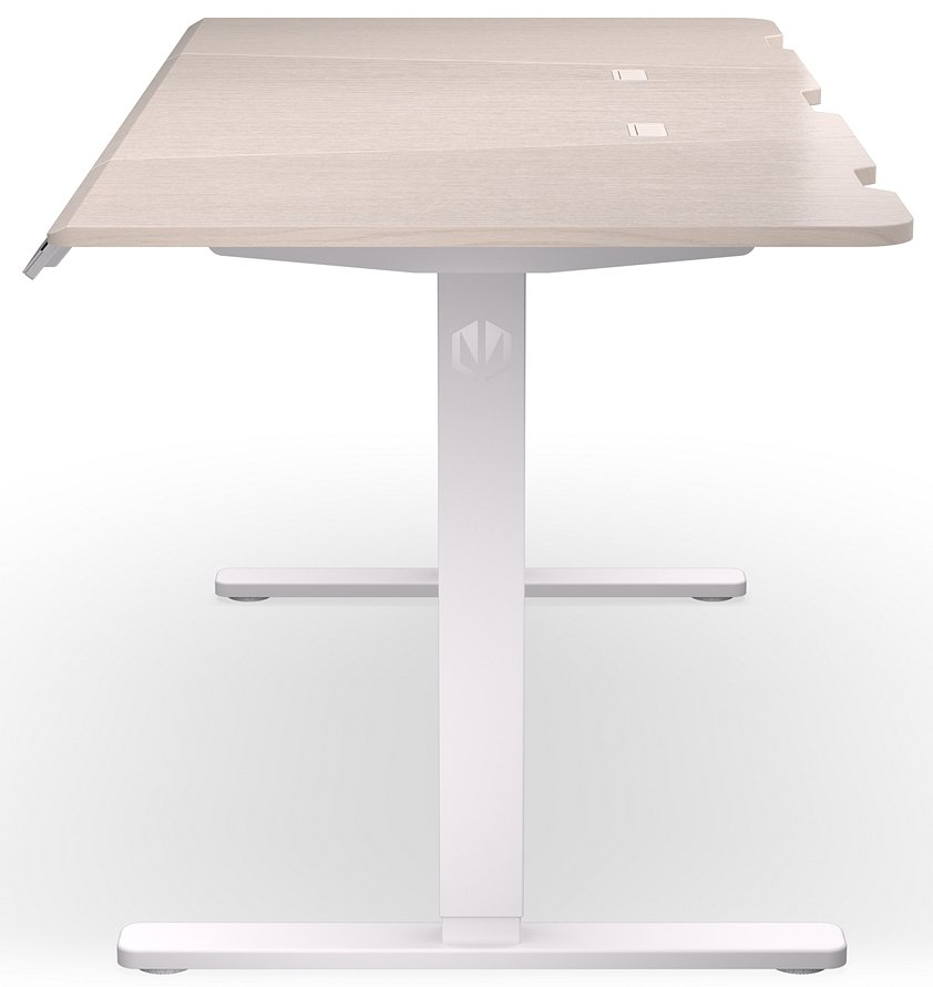 Robustní ocelový rám s práškovou povrchovou úpravou a dodatečnou výztuhou po celé šířce desky poskytuje maximální stabilitu i při plném zatížení. Velká pracovní plocha 150 × 76 cm z kvalitního MDF materiálu s povrchem v dekoru světlého dřeva unese až 80 kg vybavení a díky precizně tvarovaným hranám nabízí pohodlné a estetické řešení pro minimalistické i plně vybavené pracoviště.
