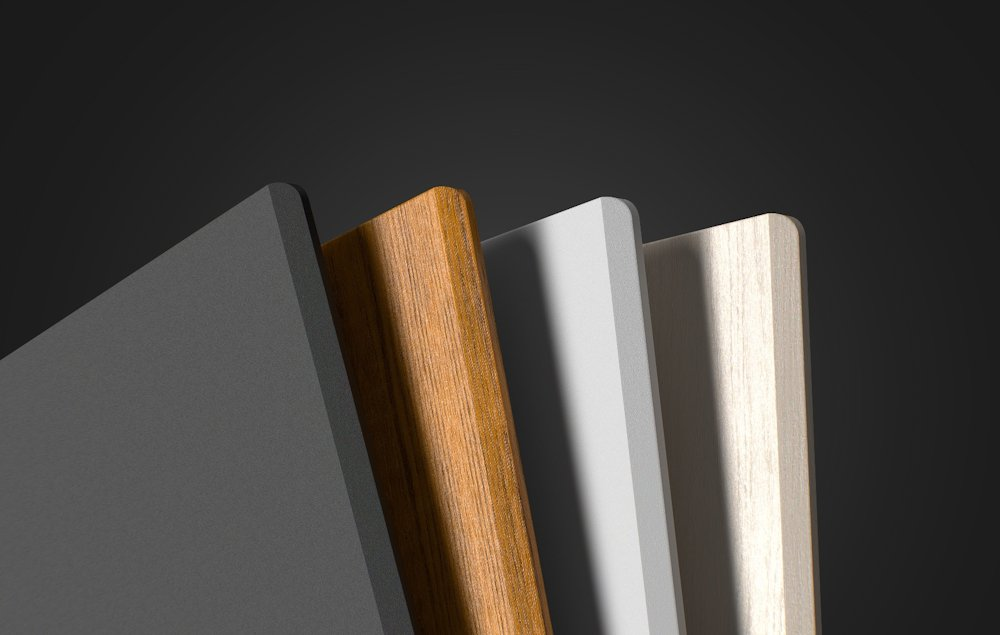 Deska z kvalitního MDF je tužší, odolnější a méně náchylná k vlhkosti než běžná dřevotříska. Tloušťka 18 mm a precizně tvarované hrany dodávají desce elegantní vzhled a zajišťují pohodlné používání při každodenní práci.