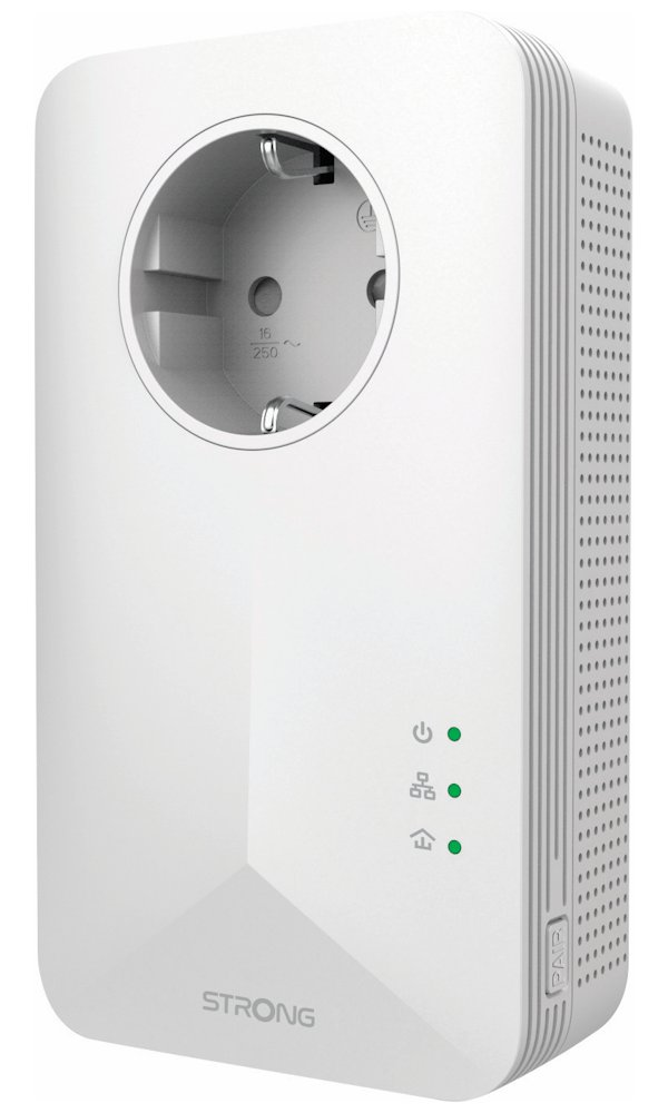 Installation is extremely simple – just connect the first adapter to your router or modem via the Gigabit Ethernet port and plug it into an outlet. Then connect the second and third adapters in any rooms where you need an internet connection. Each adapter is equipped with an integrated extra socket with 16 A capacity, so no electrical outlet goes to waste.